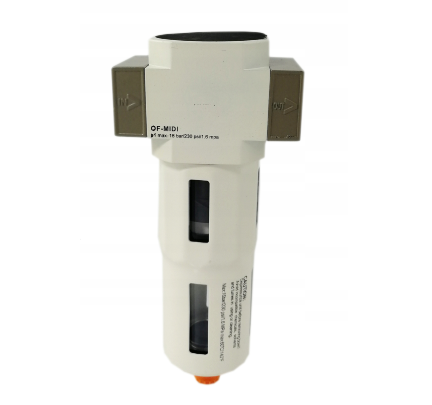 Filtr do instalacji pneumatycznych oczyszczający powietrze oraz wychwytujący cząsteczki wody.