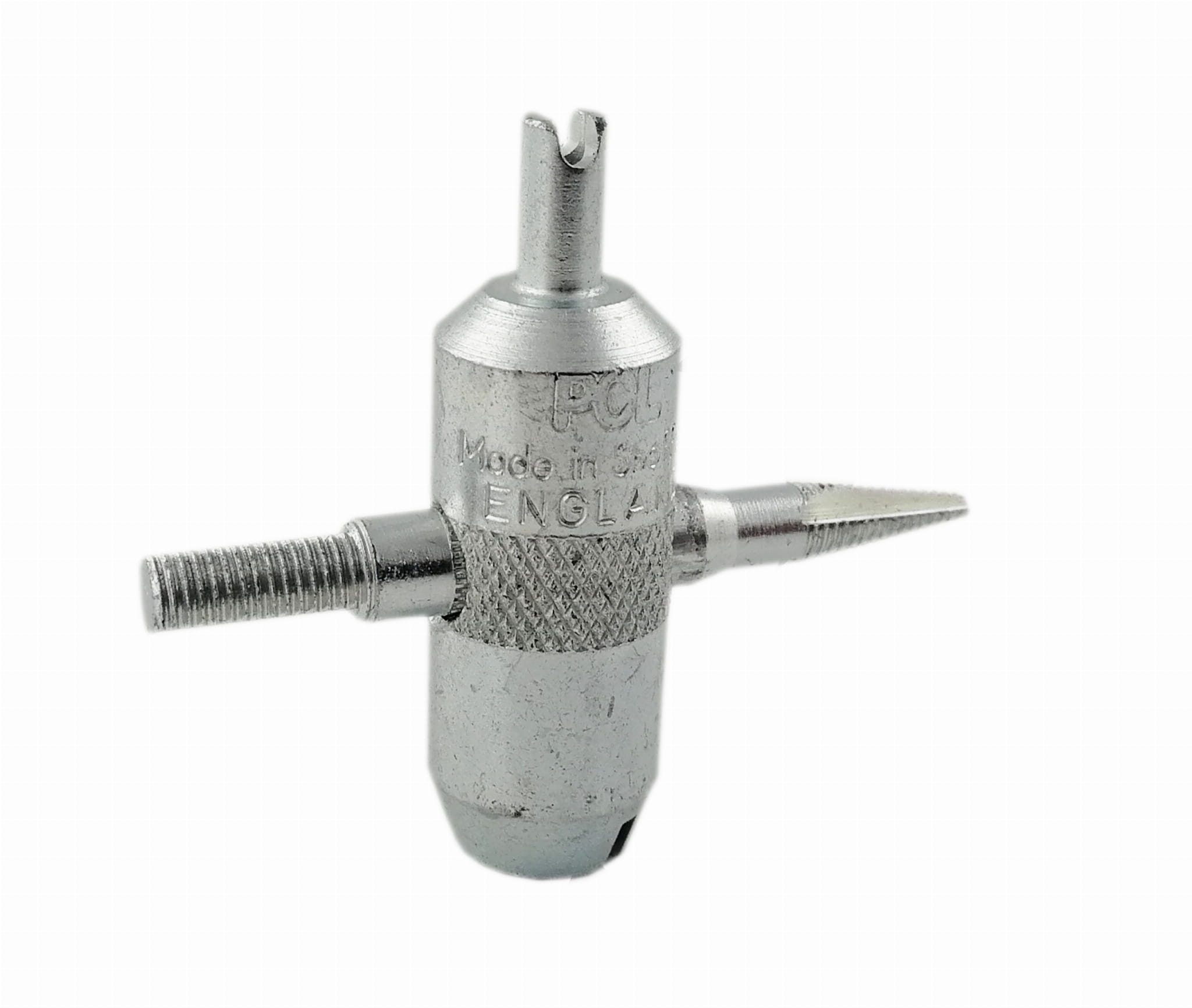Kalibrownik/gwintownik PCL przeznaczony jest do montowania nowych zaworów w oponach bezdętkowych, regeneracji zewnętrznych i wewnętrznych gwintów wentyli oraz wykręcania wkładek zaworów.