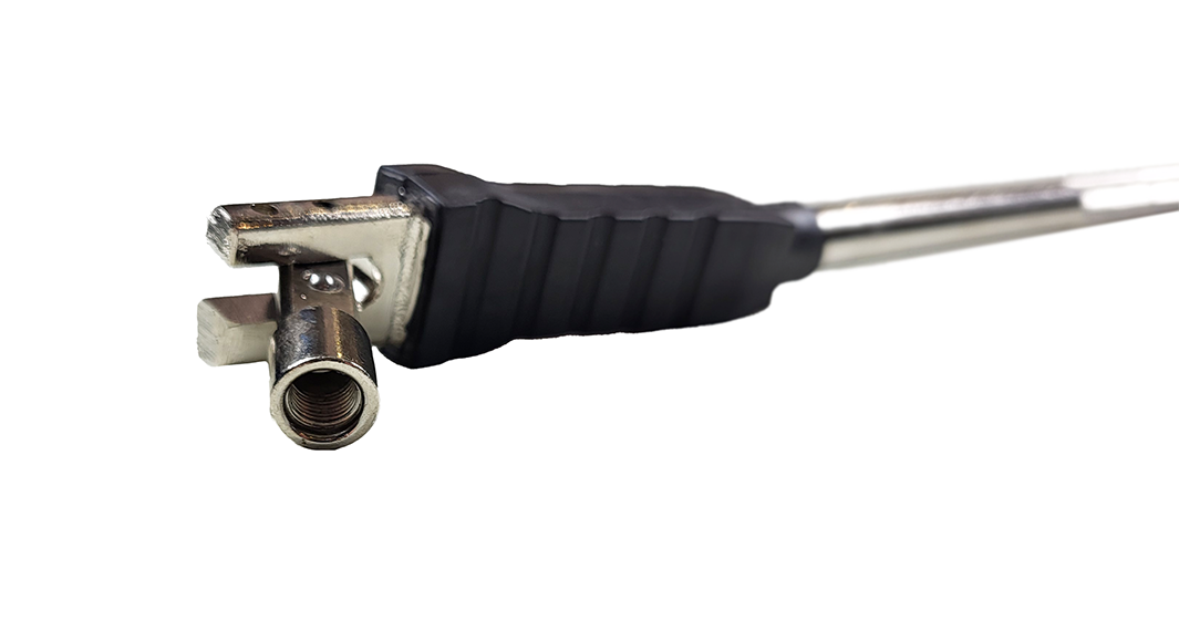 Dźwignia wyposażona została w gumową osłonę, która posiada specjalne wgłębienia, dzięki czemu nie spada z rantu felgi oraz blokadę, która ułatwia wkręcanie zaworów.
