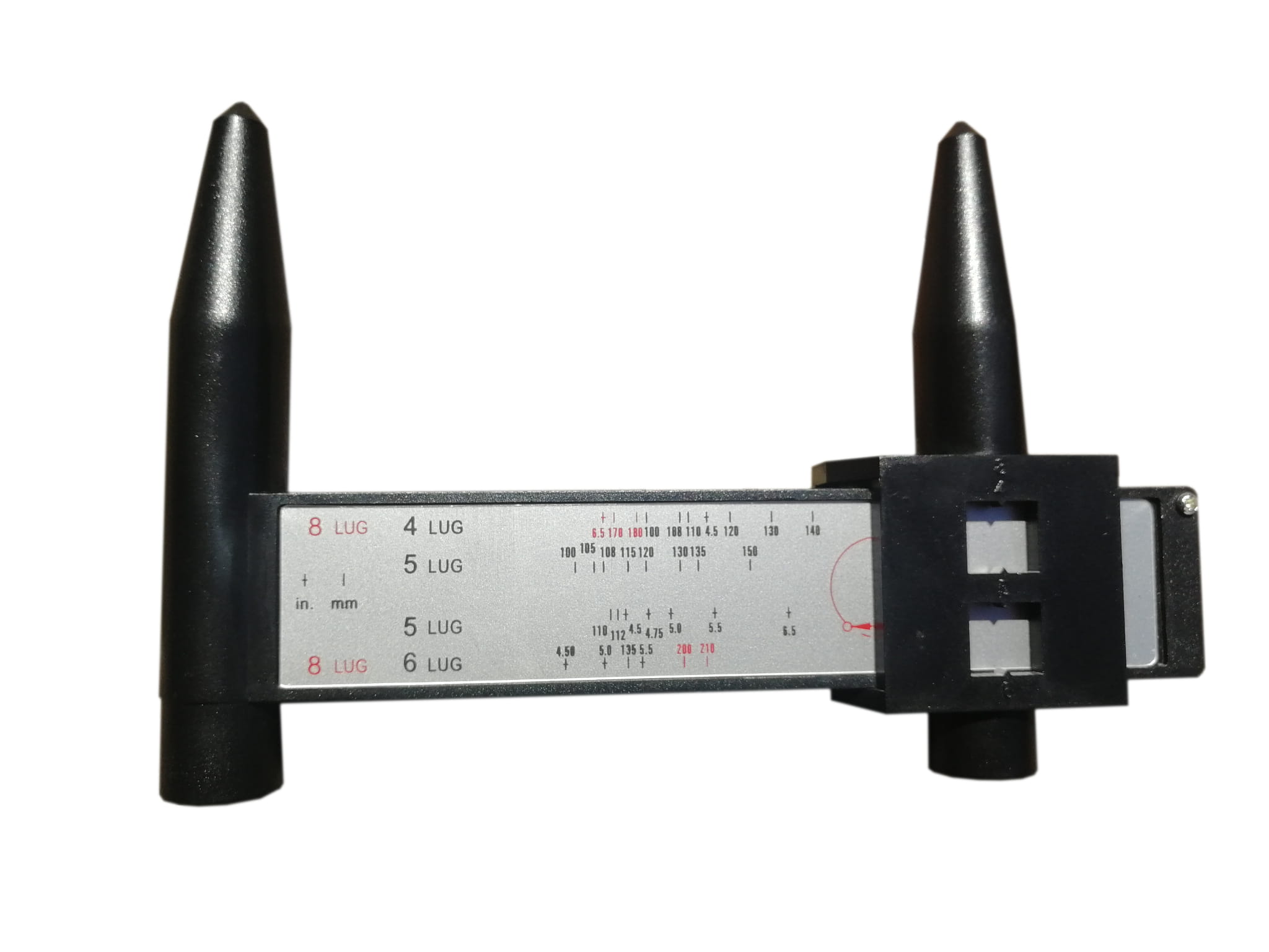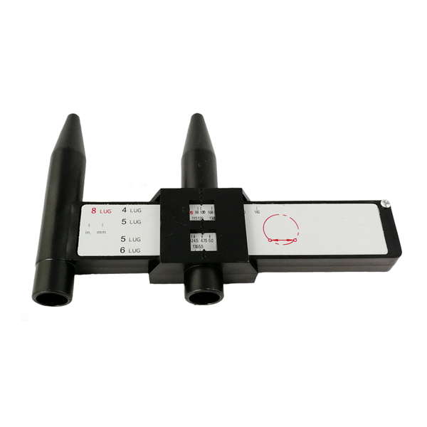 Przyrząd do pomiaru rozstawu śrub w felgach stalowych i aluminiowych.