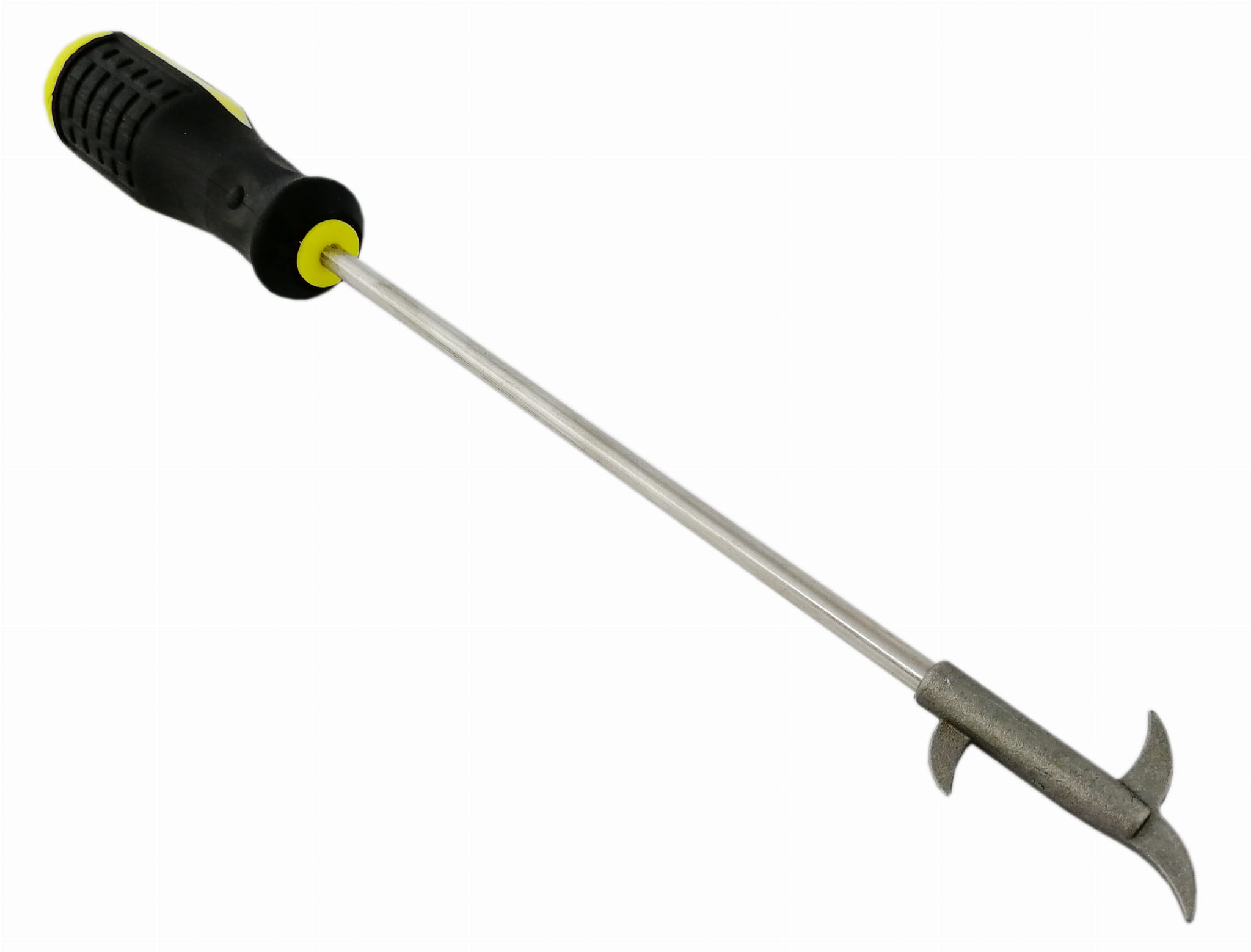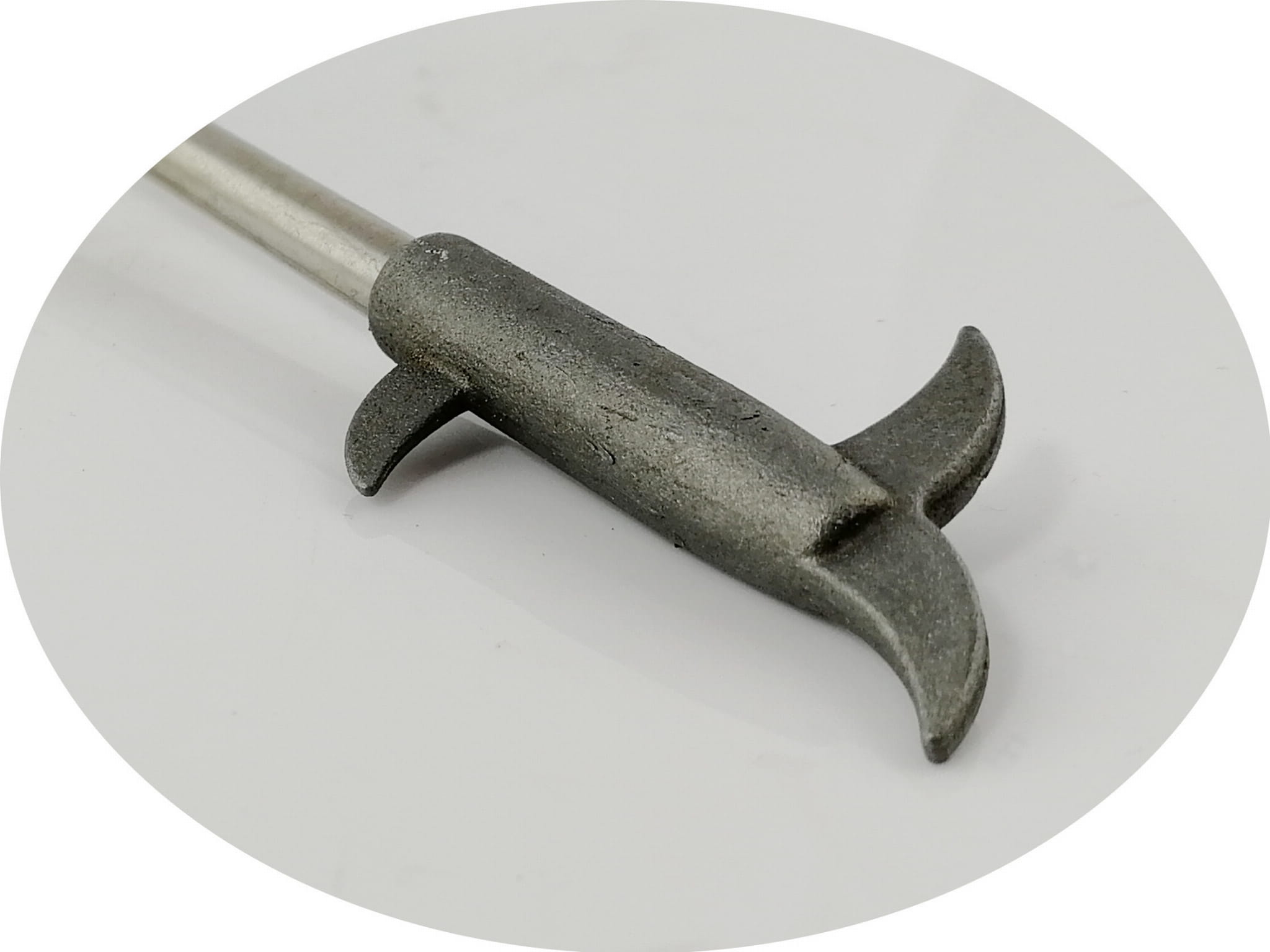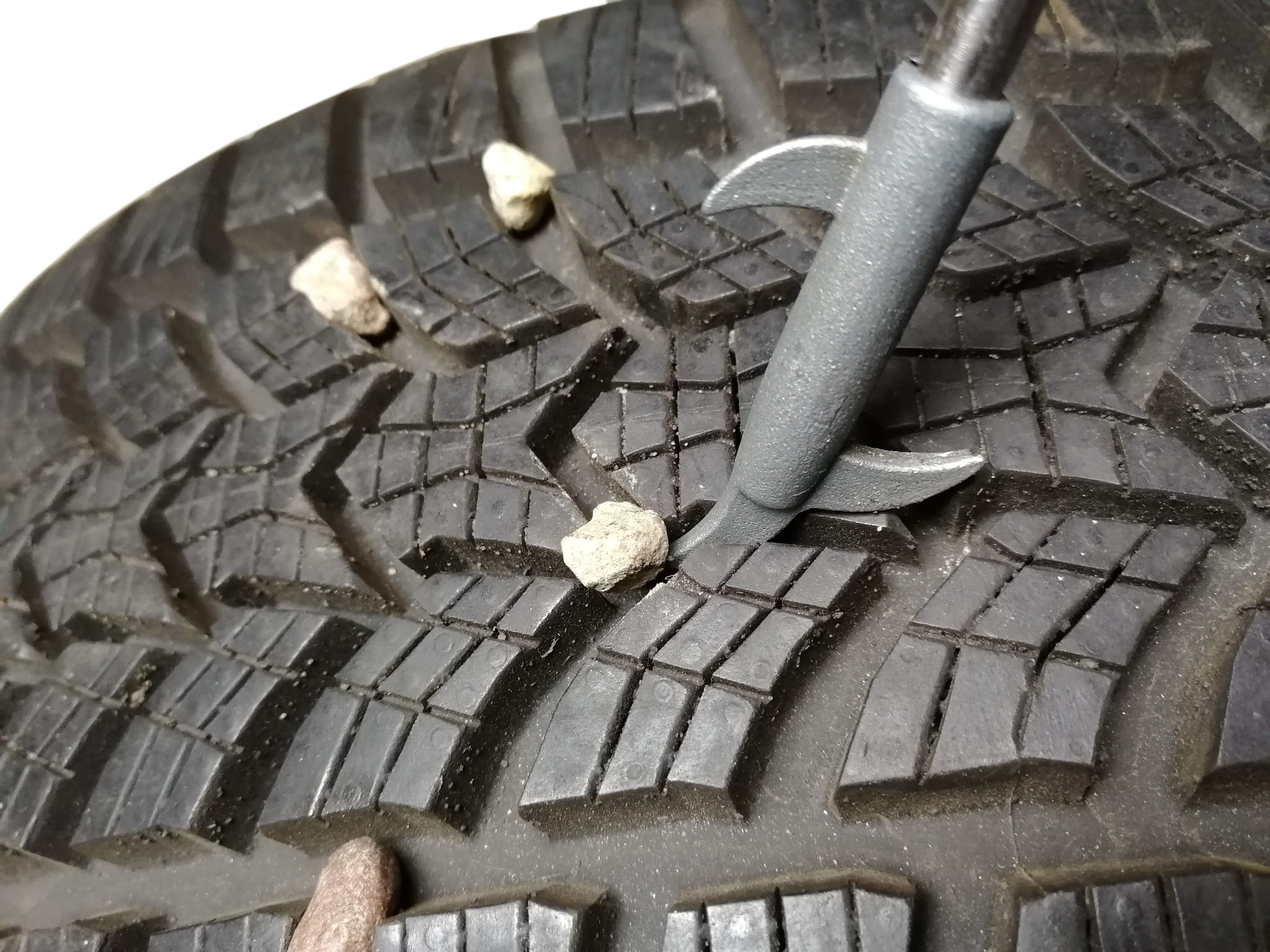 Skrobak w kształcicie harpuna ułatwia wydobycie kamieni z bieżnika.